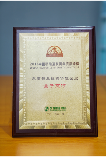 荣获艾媒咨询“2016年度最具投资价值企业”